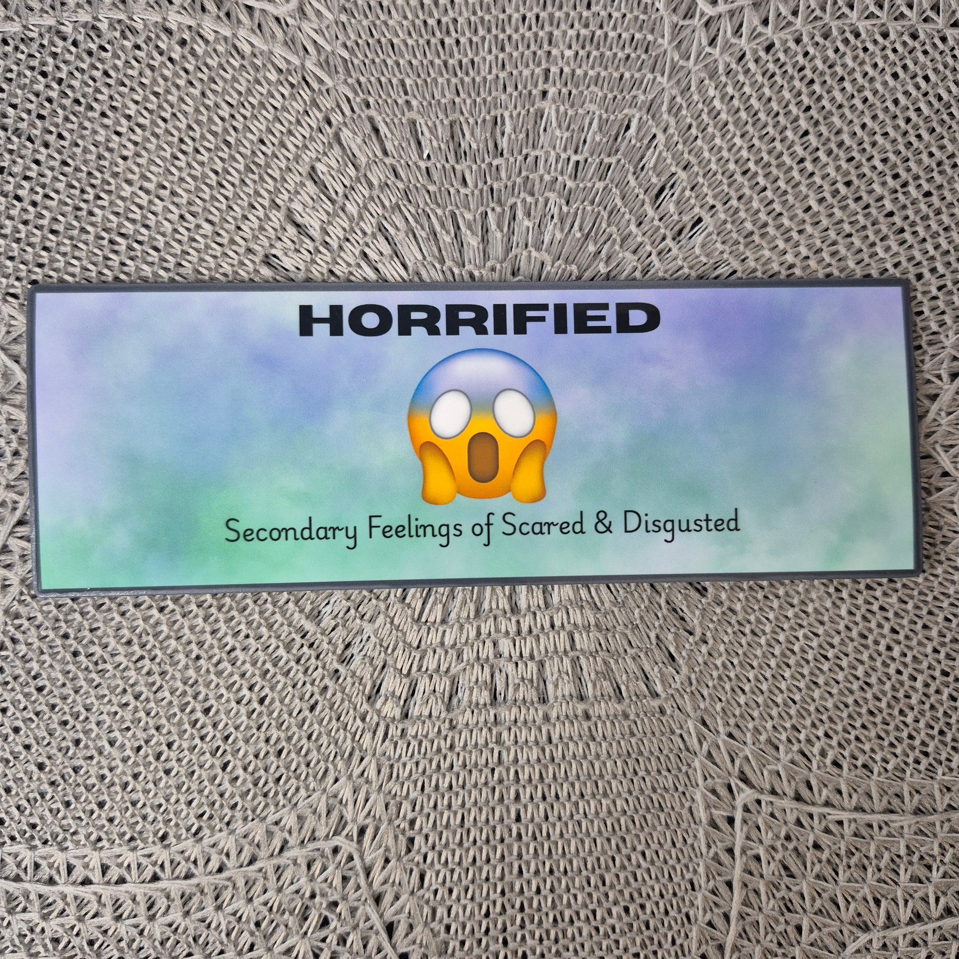 - 10 water-resistant stickers—Joy, Sad, Scared, Disgusted, Mad, Ashamed, Horrified, Guilty, Jealous, and Disappointed