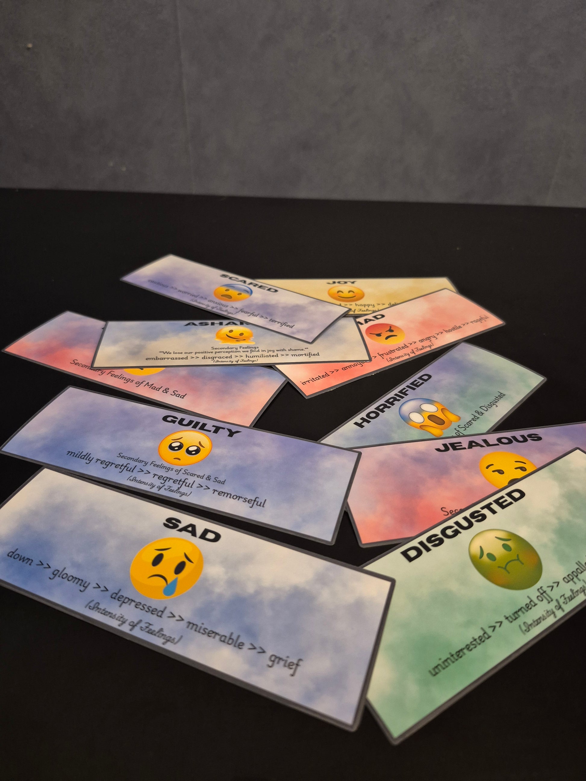Understand and explore the range of your emotions with this engaging magnet set, inspired by Cognitive Behaviour Therapy and the Emotion Wheel. Each piece illustrates varying levels of emotional intensity, helping you track and reflect on your feelings.