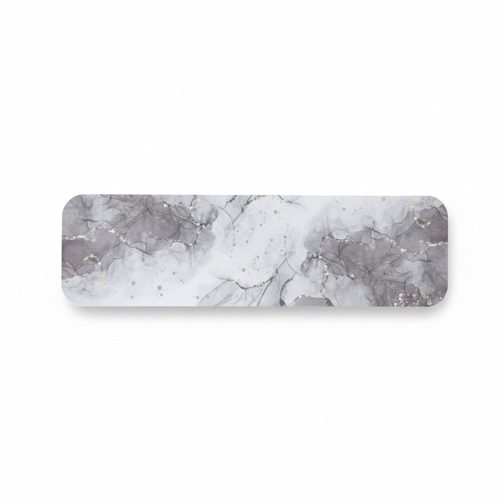 Soft grey and white marble is accented with delicate gold details, creating a timeless and modern aesthetic.