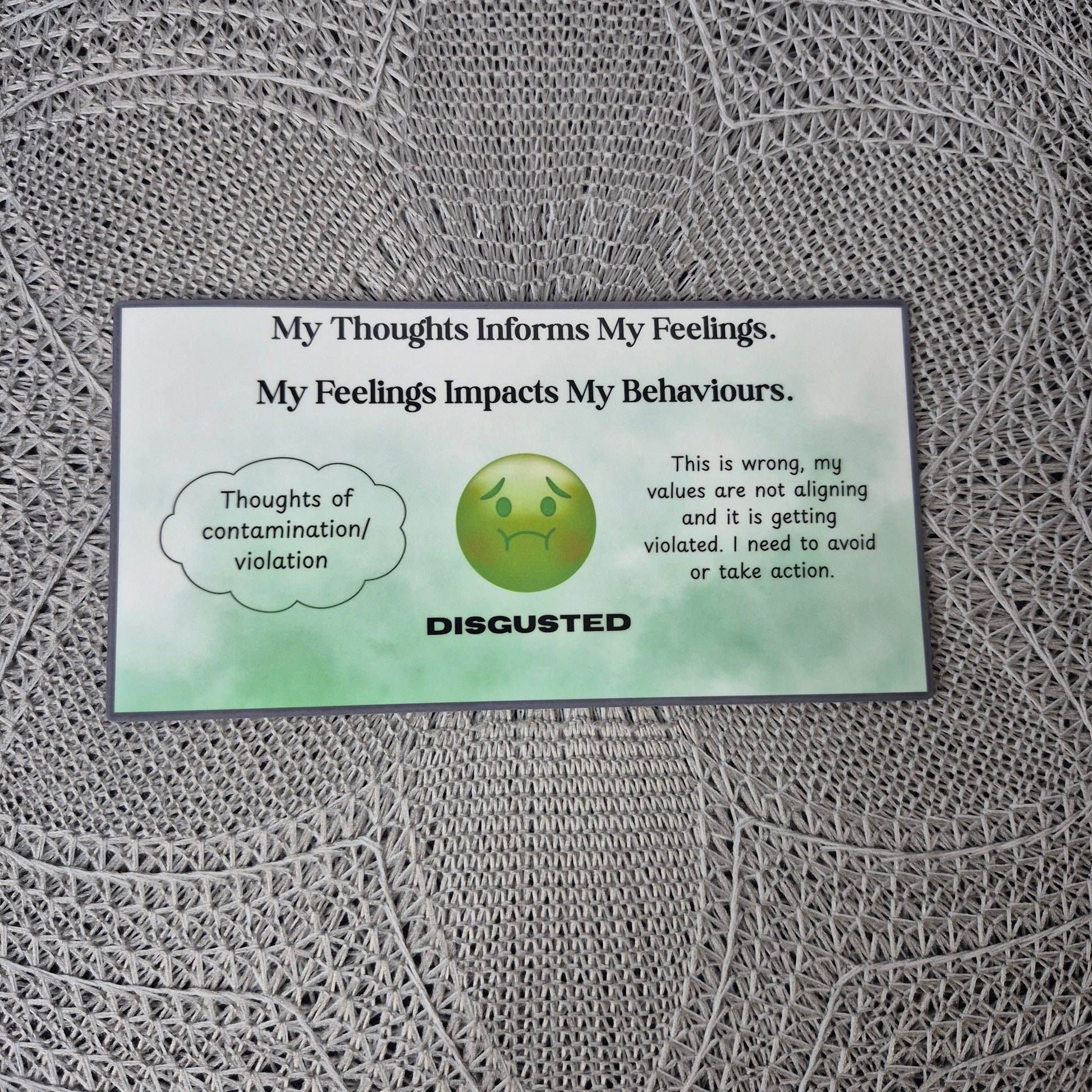 Explore the connection between thoughts, emotions, and actions with this engaging sticker set—perfect for journaling, decorating, or daily mindfulness. Inspired by the Emotion Wheel and Cognitive Behaviour Therapy, each design highlights how thoughts, feelings, and behaviours are interconnected.