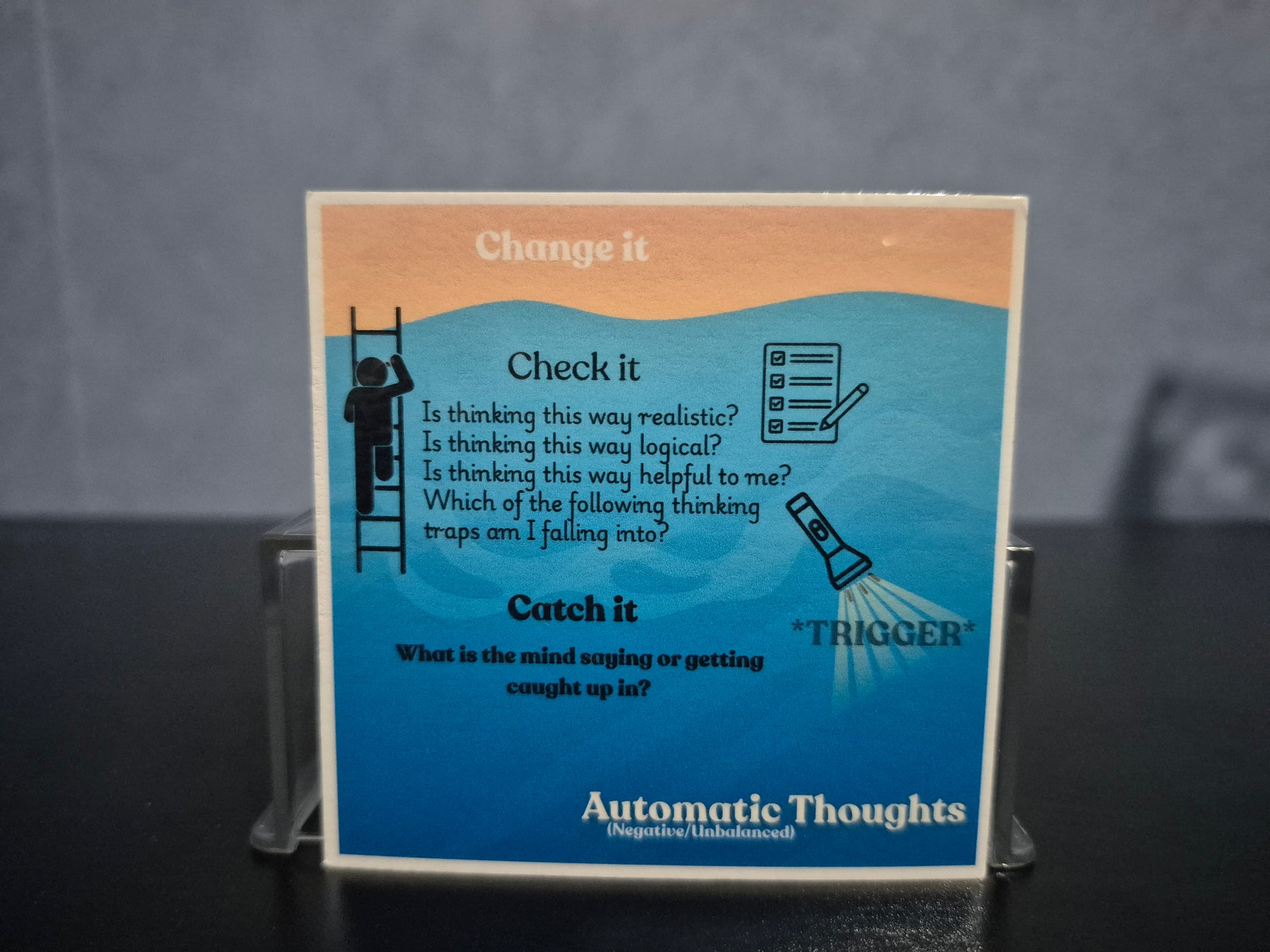 Add inspiration and personality to your everyday items with this motivational sticker design. Inspired by Cognitive Behaviour Therapy, it encourages positive thinking and personal growth wherever you place it.